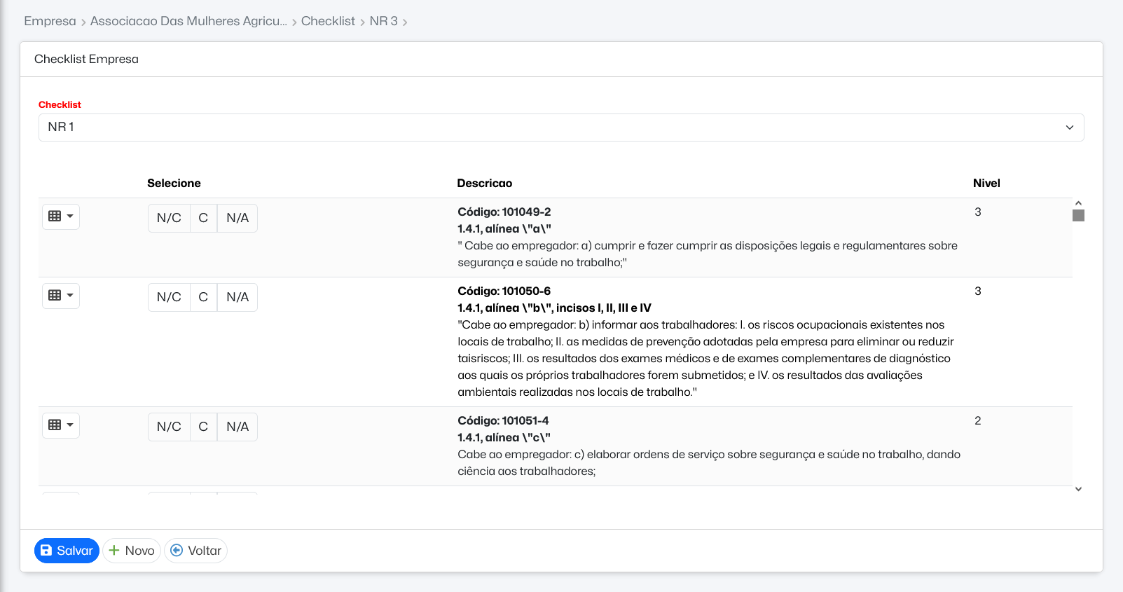 Formulario de checklist empresa não carrega