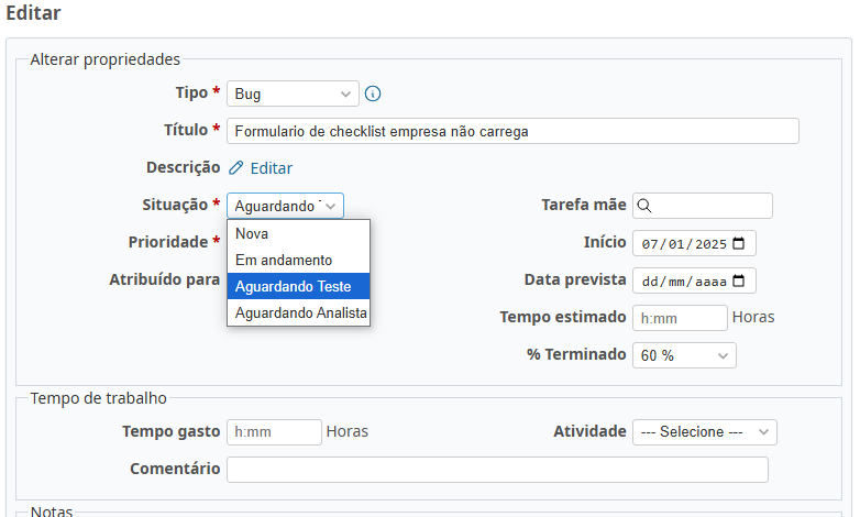 • Situação alterado de Nova para Aguardando Teste