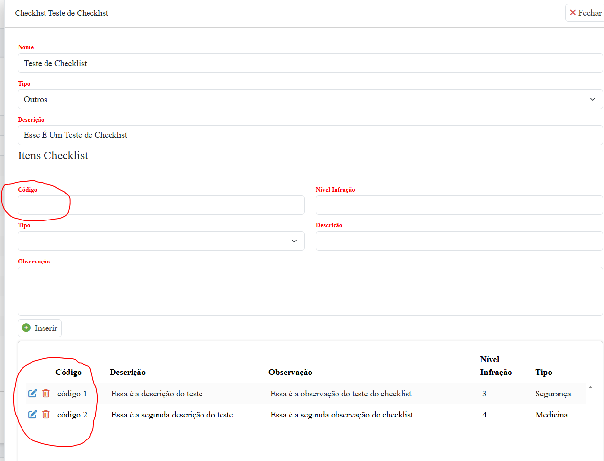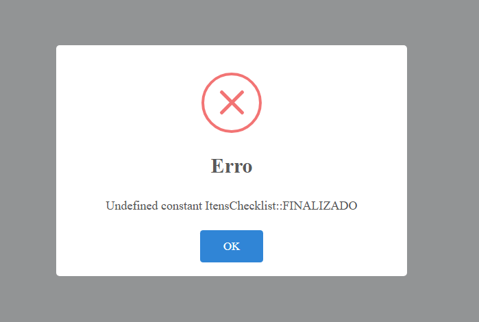 Depois de criado o checklist, ao tentar criar esse novo checklist personalizado o sistema retorna um erro.