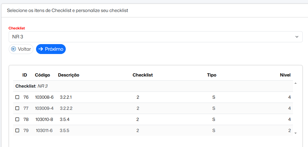 Agora, basta selecionar um checklist na combo que o filtro é executado.