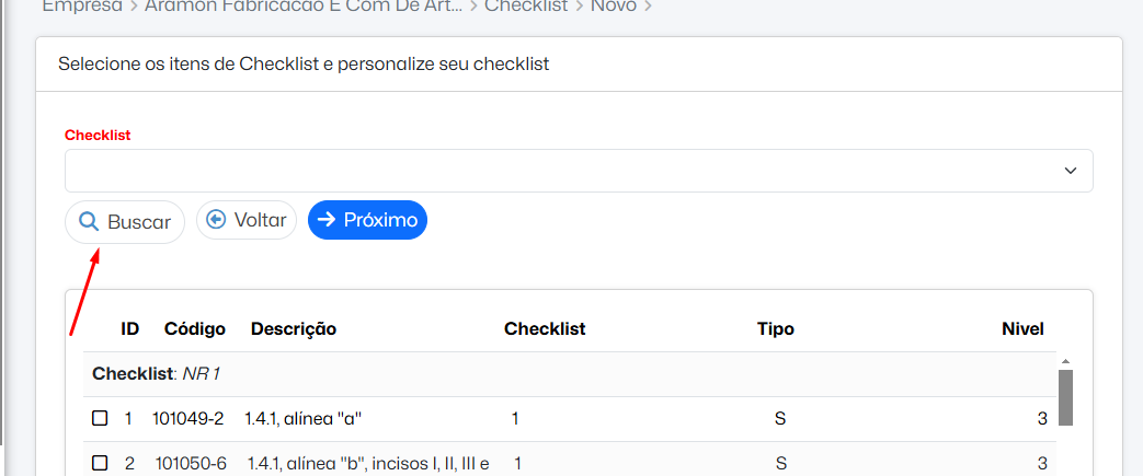 Antes, para filtrar o checklist era necessário escolher um item na combo e clicar em buscar.
