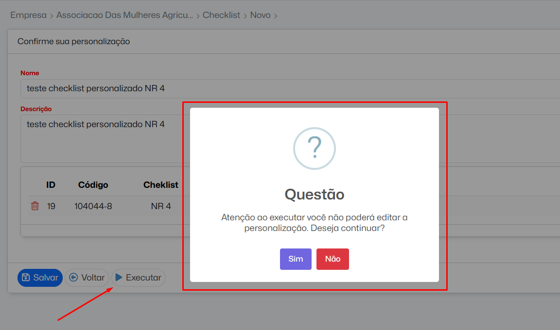 Quando o usuário escolher por executar, não será possível mais a sua edição como apresentado na imagem.